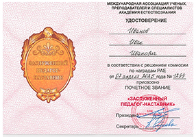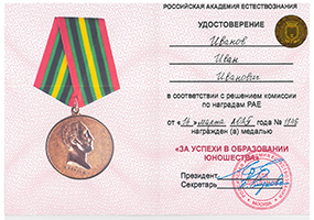 - присвоение званий и наград РАЕ с оформлением и высылкой наградных документов.